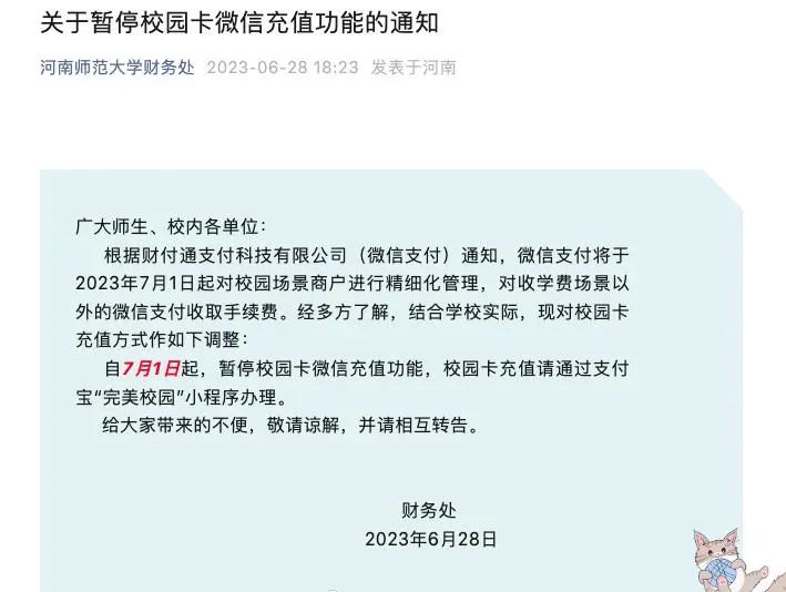 近期全国多家高校发布公告,7月1日起开始暂停使用微信支付,原因跟手续费有关。