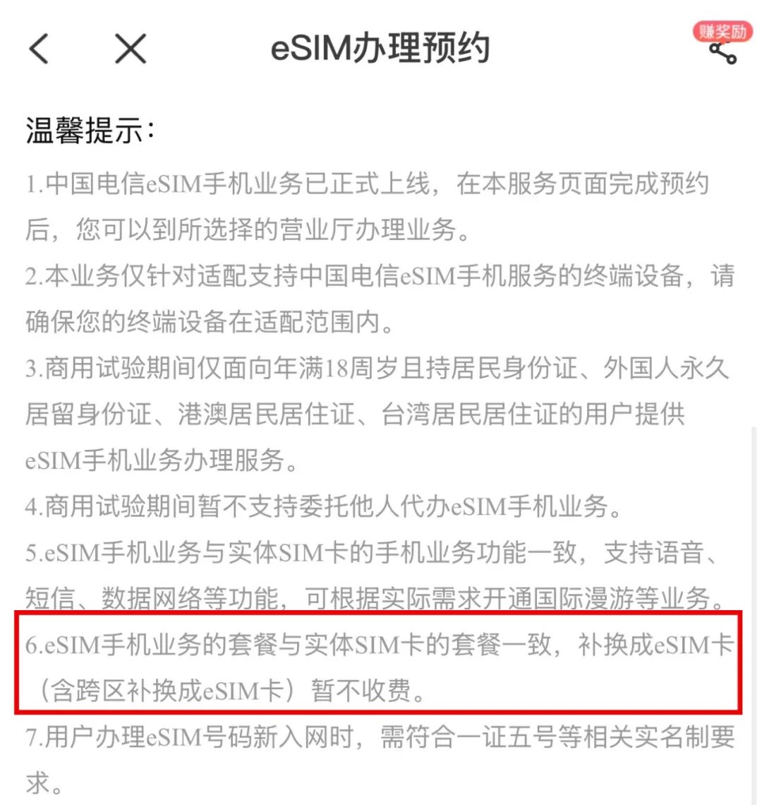 符合“一证五号”等相关实名制要求,即同一身份证下,eSIM + 实体 SIM 卡总数不得超过 5 个。