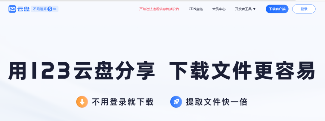 ③取消游客免登录下载功能此前,123云盘支持未登录用户免费下载小于 100MB 的文件,但更新后该权益终止。也就是现在所有用户必须注册并登录账号才能下载,若未登录,即便是下载小文件也要付费。