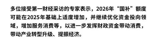 有观点认为,之前的“国补”主要集中在看得见摸得着的商品,而2026年“国补”政策将向服务消费倾斜,预计将重点覆盖文旅、体育、健康养老、托育等领域。在实物消费方面,政策会进一步向绿色智能产品、适老化改造等高端或民生领域延伸。补贴方式则将从“普惠”转向“精准”,将更多向农村地区、低收入群体倾斜,可能会有额外的叠加补贴。