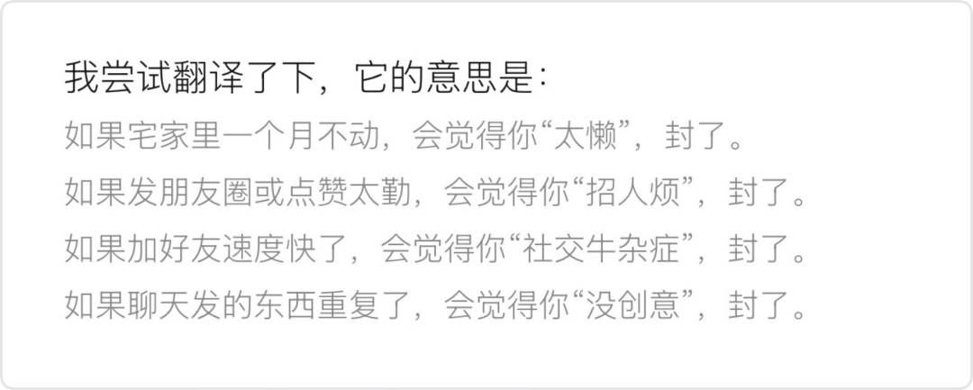 微信派官方发文辟谣称,按这图里说法,在微信,太活跃不行,太安静不行,太有钱不行,太讨人嫌也不行。