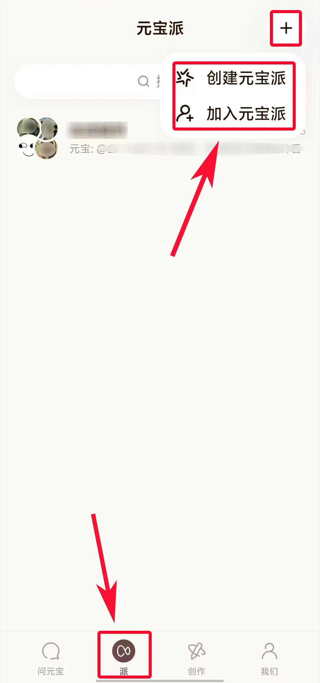 在获得测试资格后,打开腾讯元宝 App,将其更新到最新的 2.55.0 版本,会在首页下方的导航栏中看到一个新的“派”入口。